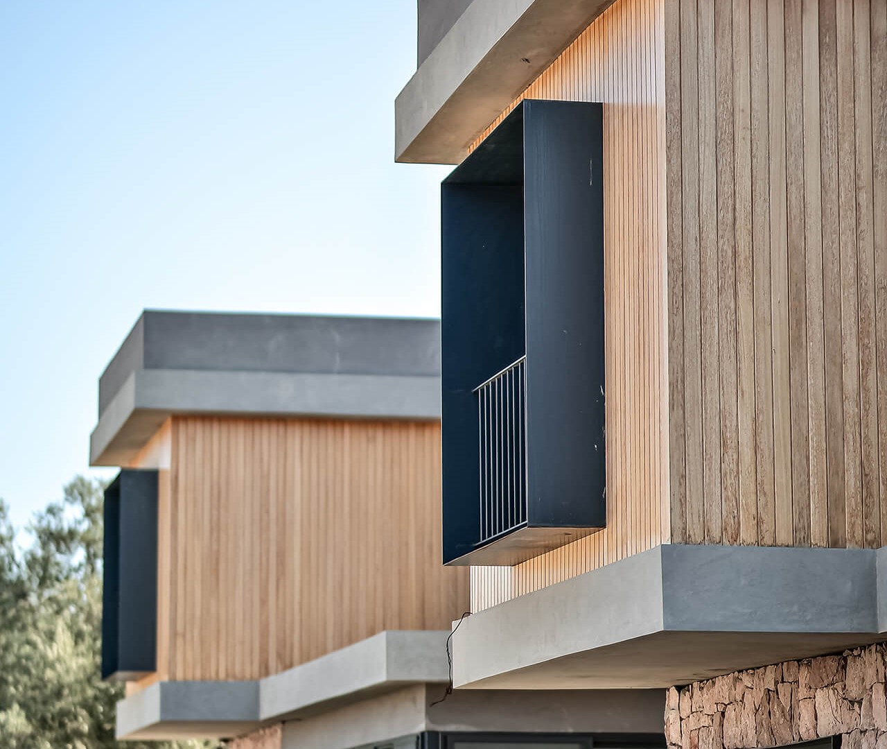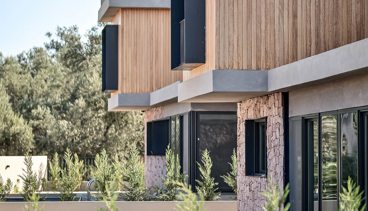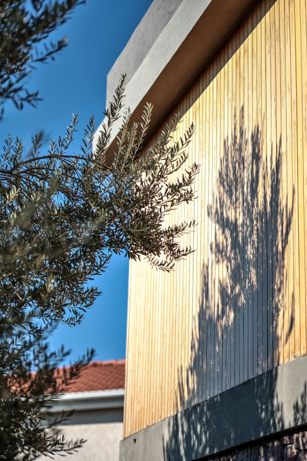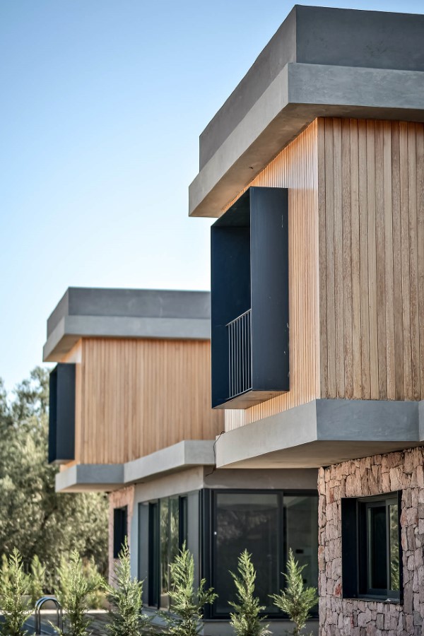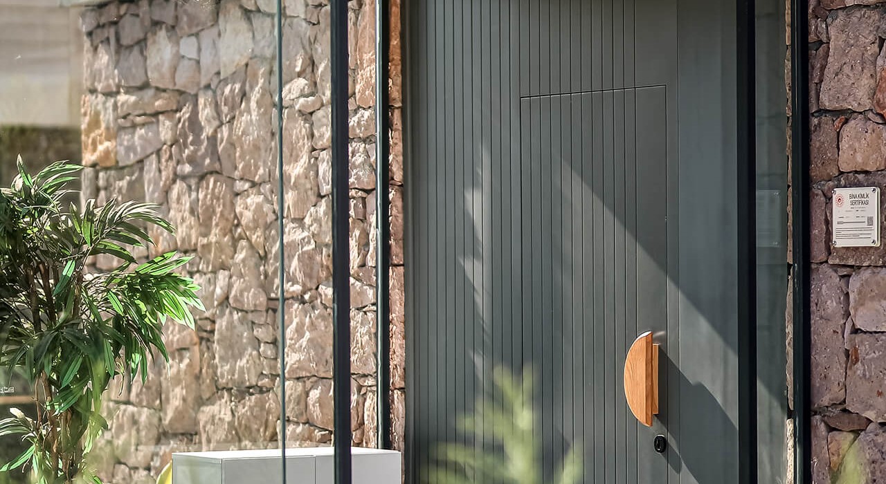 Kütle kompozisyonu yatay ve düşeyde süreklilik üretmek yerine, kontrollü kırılmalar üzerinden derin bir gölge organizasyonu tanımlar. Bu yaklaşım, yapıyı biçimsel bir jestten uzaklaştırarak, gün ışığıyla birlikte sürekli değişen durağan değil yaşayan bir mimari deneyime dönüştürür. Cephelerde kullanılan doğal taş, dikey ahşap ritmi ve koyu çerçeveli derin pencere boşlukları; malzemenin ifade gücünü gösterişten değil zamansızlık ve yerle kurduğu bağ üzerinden tarif eder.