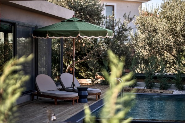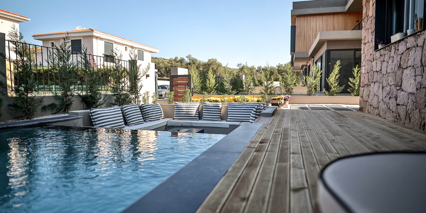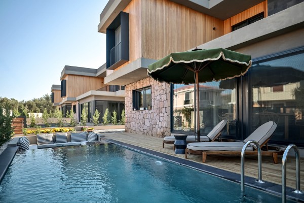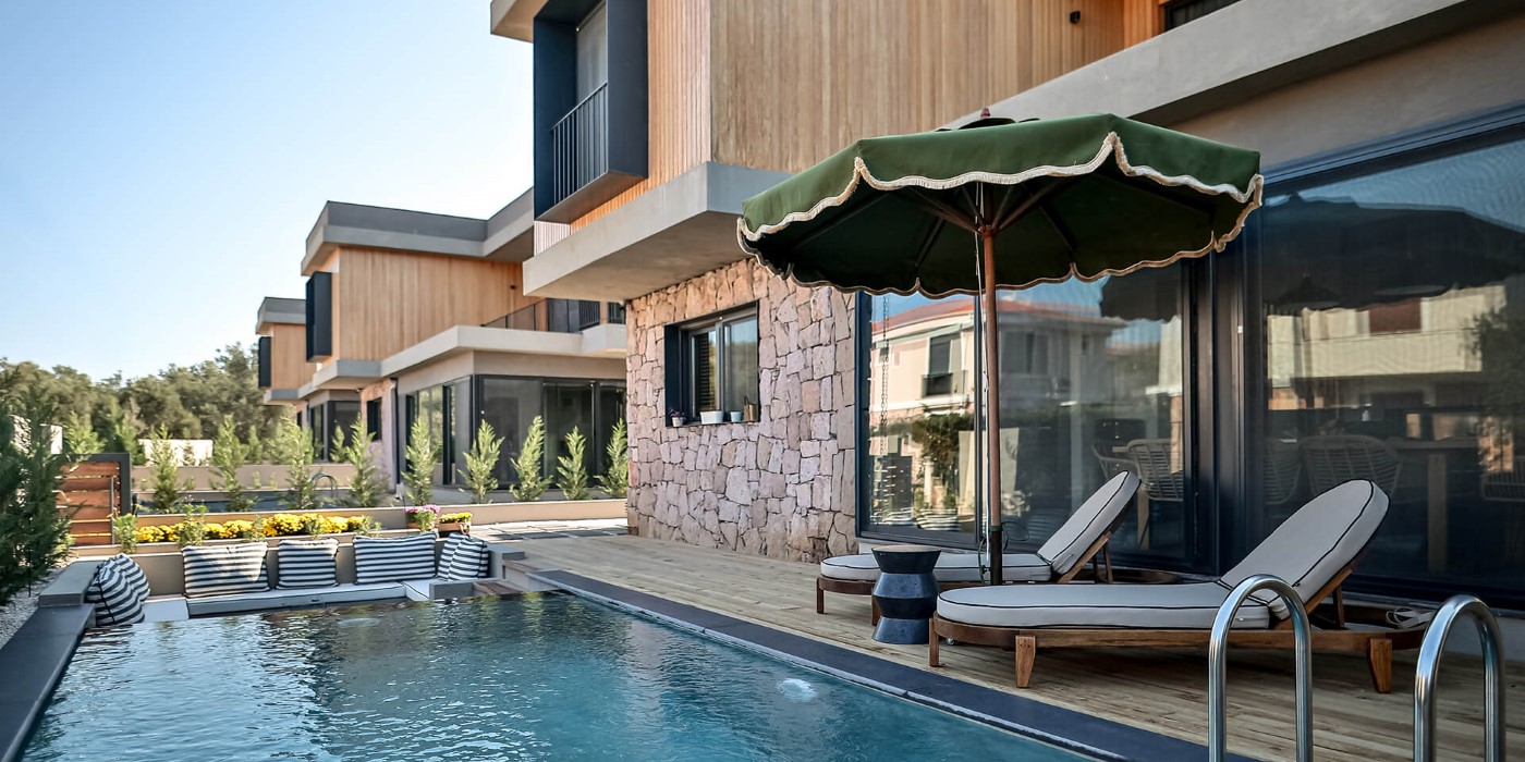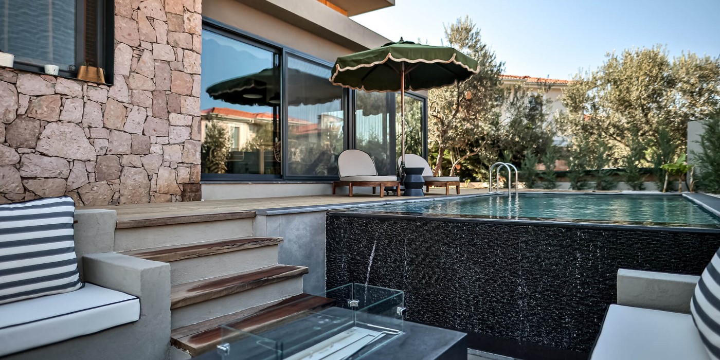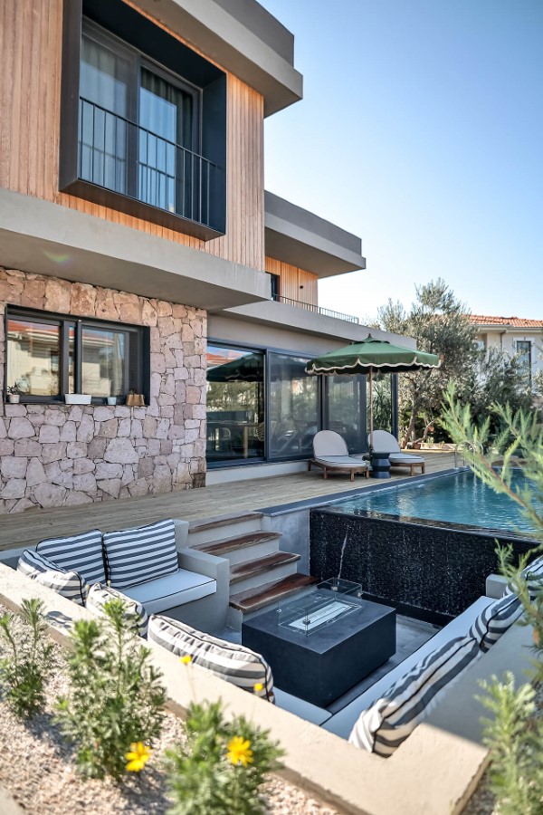 Düz bir kütle yorumu yerine parçalı bir hacim stratejisiyle ele alınan bu konut yapısı, Ege coğrafyasının ışık, rüzgâr ve gündelik yaşam ritmini doğrudan mekânsal karara dönüştüren kontrollü bir açıklık kurgusuna sahiptir. Yapı, çevresiyle güçlü bir görsel ilişki kurmakla birlikte, özellikle havuz kotunda oluşturulan ateş çukuru ve geri çekilmiş yaşam terasıyla mahremiyeti koruyan, ancak dış mekânla bağını koparmayan bir denge üretir.